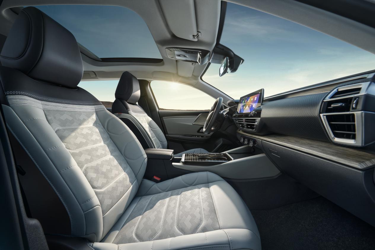 面对如此亮眼的数据,东风研发总院非金属材料工程师龙宇在现场揭秘背后的匠心,“凡尔赛从材料源头就锁死健康防线。”她进一步解释道。凡尔赛C5 X的前风挡采用知名品牌圣戈班的双层夹胶玻璃,内嵌PVB膜实现99%紫外线及85%红外线隔绝率;全景天窗采用了5层复合遮阳帘,实测每200mm²光点少于5个。内饰材质方面,全系选用的是TPO环保表皮、水性胶粘剂等材料,确保座舱空气质量达到母婴级安全标准。
