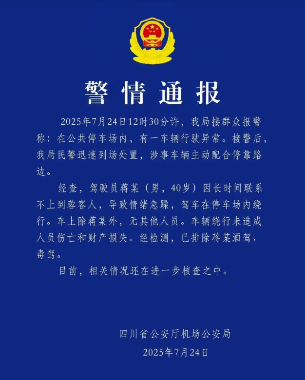 7月24日,四川天府机场一辆小汽车绕圈事件迅速引爆热搜。网传车辆失控的猜测引发恐慌,但警方和比亚迪澄清后真相浮现。