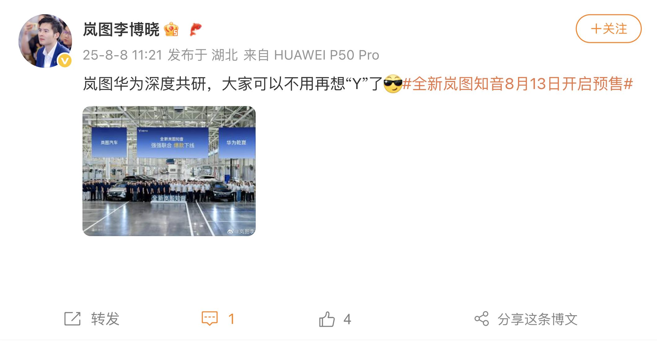 华为全力押注岚图,强化“中国技术共同体”合作模式