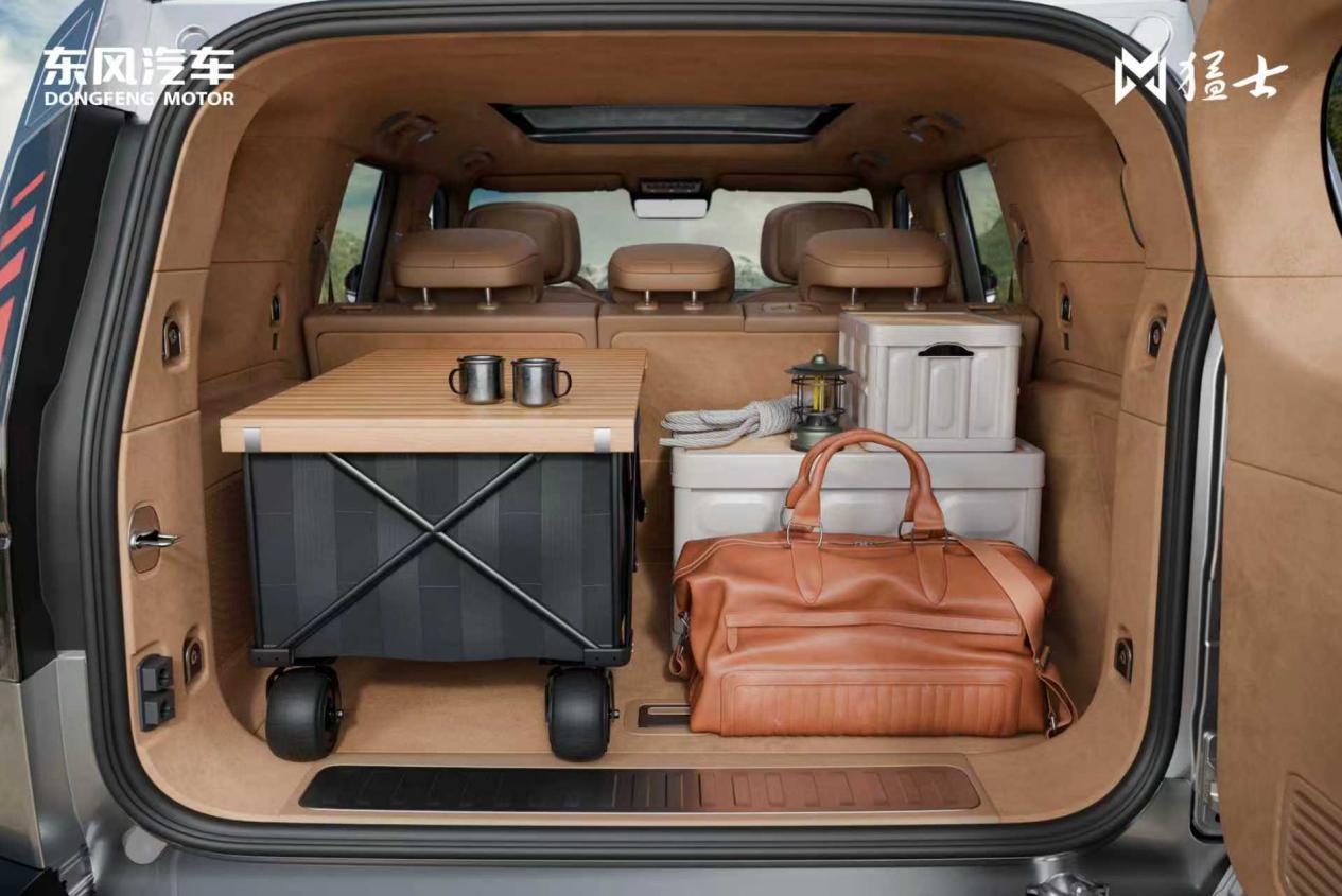 依托5100mm车长与3005mm轴距的越级表现,猛士M817打造“超享魔术空间”,第一排座椅放倒可衔接后排形成1.7米标准双床,第二排放平后与后备厢地毯组成2.1米舒享大床,秒变“午休舱”或“露营卧室”;828L后备厢常规容积,放倒后排后最大拓展至2112L,滑雪板、冲浪板等各种装备轻松容纳。