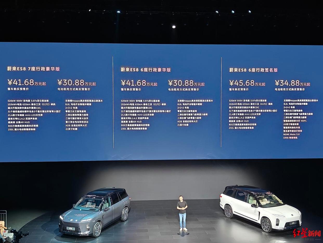 六座行政签名版的整车购买预售价为45.68万元起,电池租用方案预售价为34.88万元起(102kWh电池月租金1128元)。