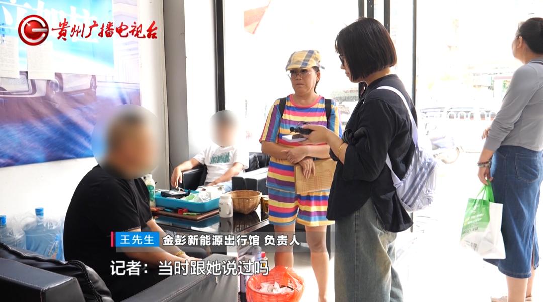 金彭新能源出行馆 负责人 王先生:说了,你可以问当时带她来的人,在那边桌上我们说得一清二楚。