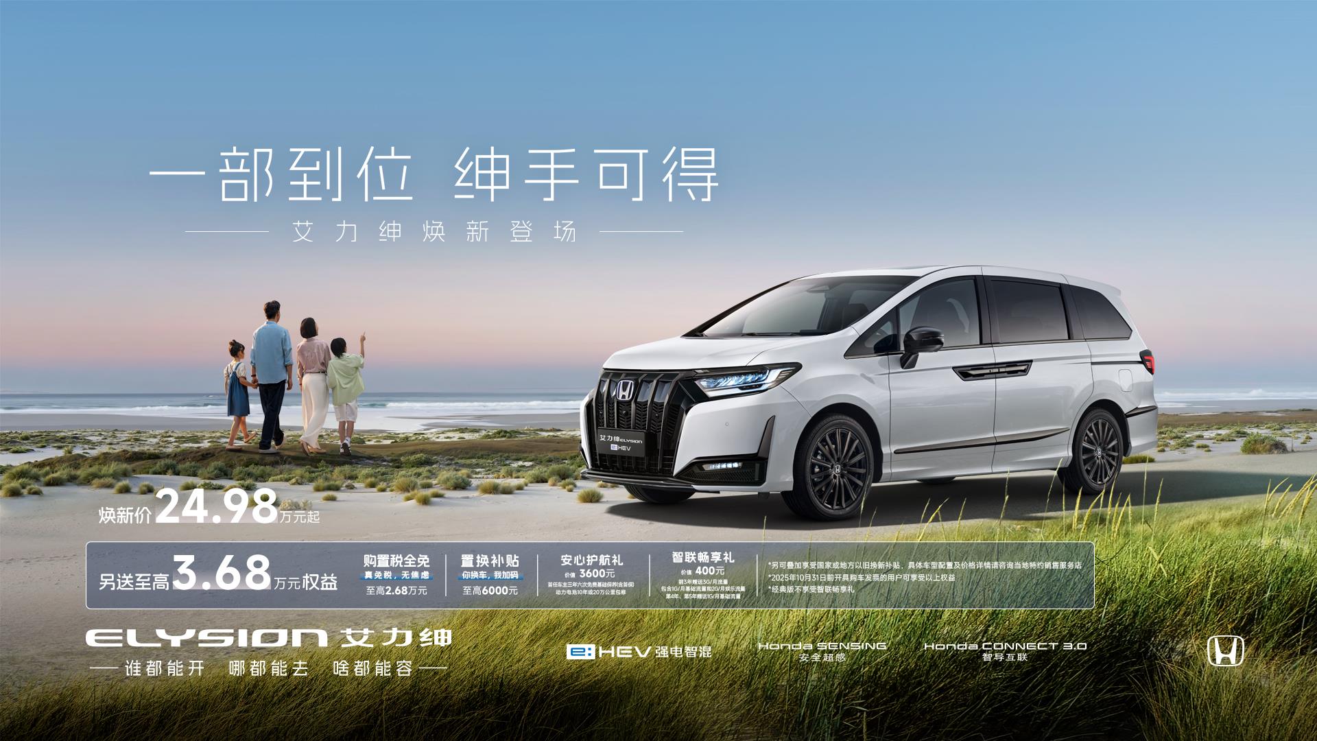 在多元出行的时代,覆盖从城市日常到跨省远行的全场景用车需求是一台全能MPV的基本素养。在这方面,东风本田新款艾力绅凭借其高效混动系统、便捷互联系统,成功打破场景限制,让每一位用户在任何路况与生活状态中,皆可驰骋自如,从容应对。