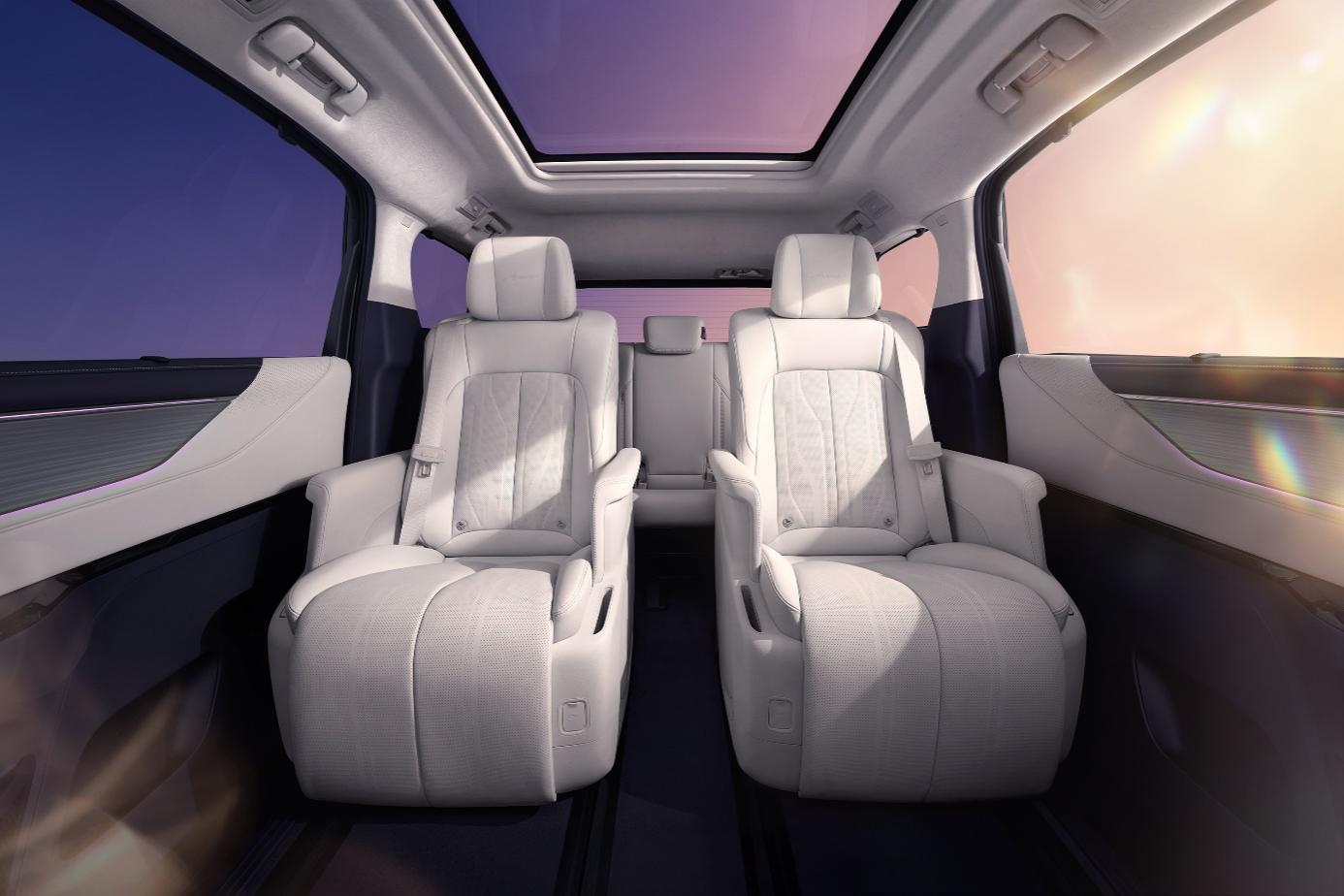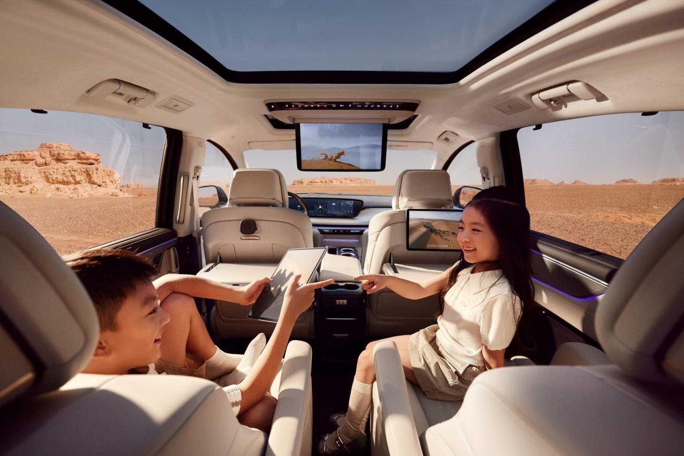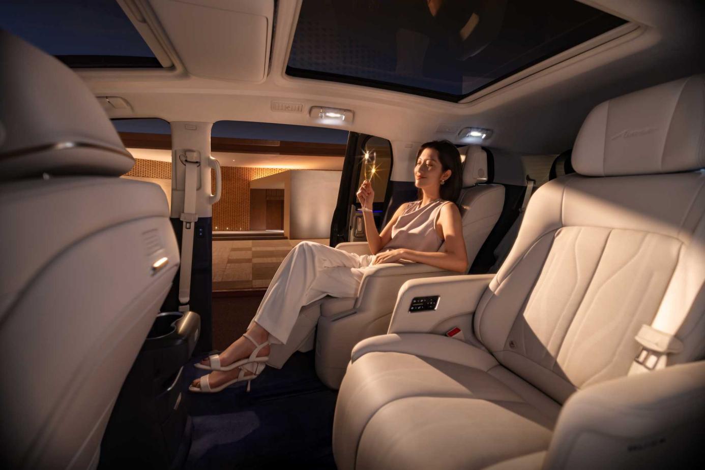 步入车内,全新“霞紫月白”内饰通过环绕车舱的极简线条、撞色设计与唯美的“向上生长”花纹绗缝,展现东方美学尊贵与典雅的同时,也彰显了车主的不凡品位。材质方面,车舱顶部运用大面积超细纤柔麂皮绒面料,在视觉上拥有媲美顶级手工皮具的豪华哑光质感,每平方米超一亿根的绒毛密度确保了温润亲肤的触感。车门部位全系标配Smart Touch光感触控板,通过16层精湛工艺实现金属拉丝质感,将门锁、记忆等功能开关集于面板之下,将科技融入纯净美学。全车三排座椅皆使用北美超柔全粒面头层Nappa真皮包覆,同级唯一全系标配,触感如婴儿肌肤般细腻柔软。同级唯一的带冷暖箱礼宾灵动岛台同样全系标配,采用业内首创隐藏式电控滑轨,支持260mm大行程前后移动,不仅给前后排乘客带来便利,更能烘托内饰简约格调。新车还为乘客脚部所能触及的区域,铺上了同级唯一的澳洲进口13mm绒高羊毛脚垫,每平米1400克重的天然羊毛纱线,在提供舒适脚感的同时,也将车内的豪华氛围提升到新的高度。