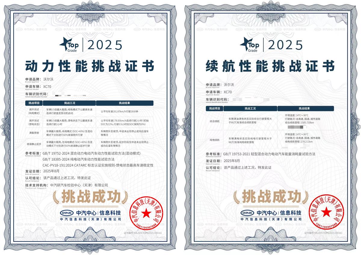 并且,沃尔沃全新XC70于近日接受了国内权威汽车检测机构——中汽中心(全称:中国汽车技术研究中心有限公司)的多项测试,以“实测纯电续航278.2km、综合续航1585.7km;60%陡坡顺畅登顶,馈电高环下仍能以178km/h平均车速持续行驶2小时不失速”等硬核成绩,全面验证了沃尔沃SMA超级混动架构的技术先进性和产品可靠性。