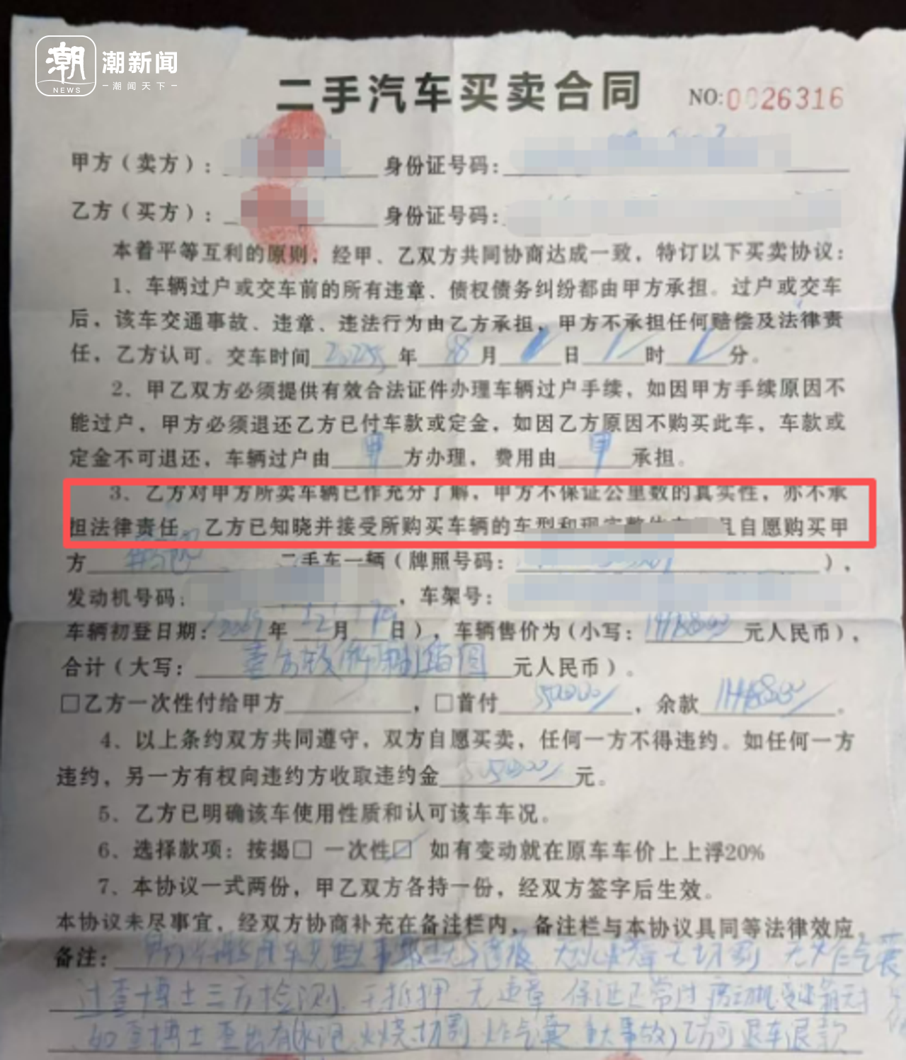 值得注意的是,在杨旭和二手车商签订的合同中,有个条款写道:“乙方对甲方所卖车辆已作充分了解,甲方不保证公里数的真实性,亦不承担法律责任。”郭海晶律师认为,消费者权益保护法和浙江省的实施条例都已经明确规定了销售方的责任,该内容违反法律法规规定,属于无效条款,二手车商不能以此逃避责任。