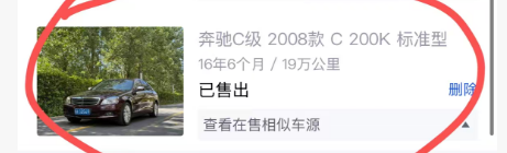 “我当时在汽车某App上找合适的车型,发现有一辆2008款的奔驰C级车,车龄16年6个月,行驶里程19万公里,标价1.98万元,还挺符合我的要求的,就联系了二手车商线下看车。”