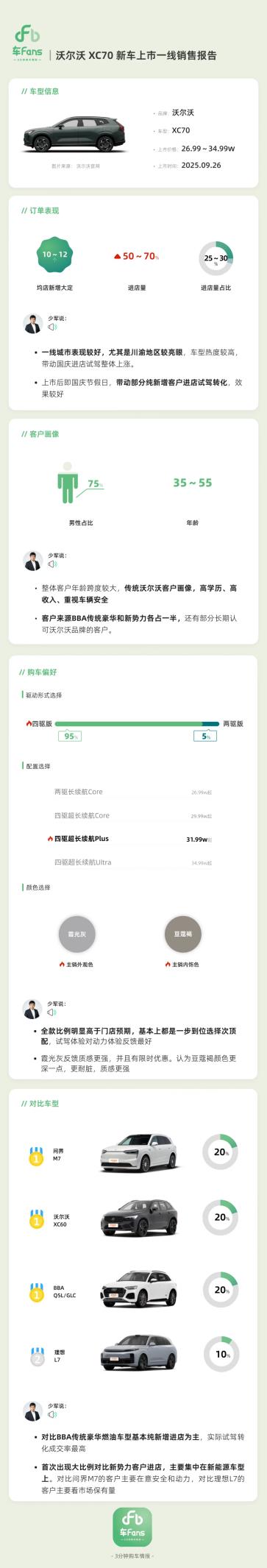 数据表明,全新XC70贡献了25%-30%的进店量,并推动整体到店客流同比激增50%-70%,市场热度显著。
