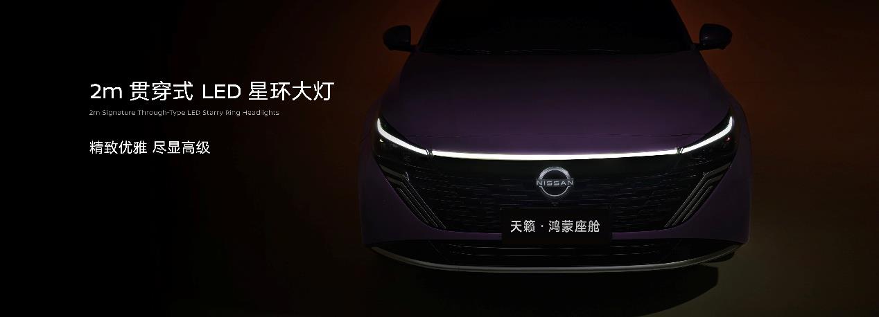 天籁·鸿蒙座舱以“流光智美”为设计理念,彻底跳出燃油车设计框架,车身姿态简约、高级、优雅。其2米长贯穿式LED星环大灯,呈现精致高级视觉;双子星LED前大灯,拥有同级第一230米超长照射距离,夜晚行车更安全。为满足用户多样化审美需求,天籁·鸿蒙座舱推出两款专属配色:羽砂灰,自信动感;幻影紫,优雅高贵。