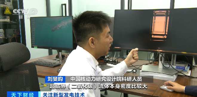 中国核动力研究设计院科研人员 刘旻昀:超临界(二氧化碳)流体本身密度比较大,所以它的做功能力更强,我们经常开玩笑说二氧化碳是“天选之子”,是从20多种工质里挑选出来,发现二氧化碳是唯一一种具有独特做功优势的。