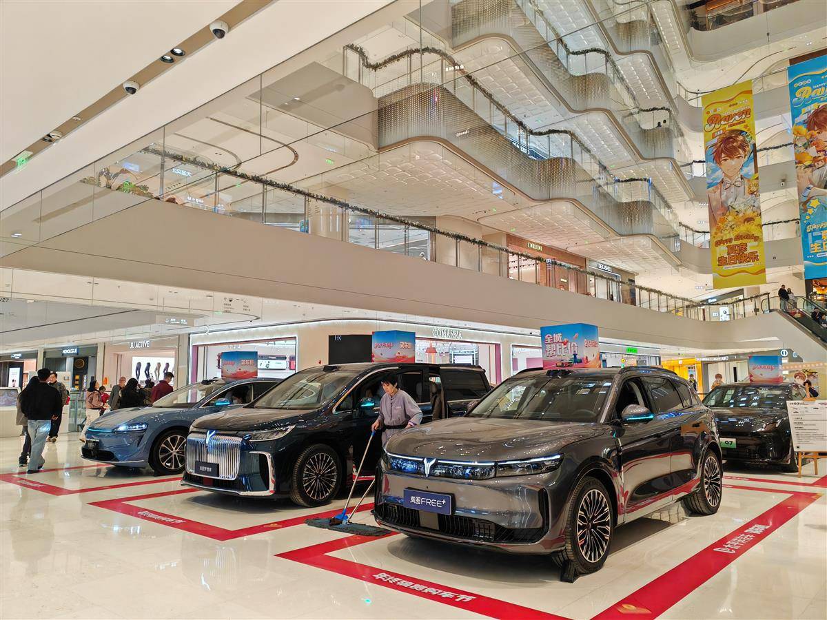 武汉商场内,新能源汽车品牌琳琅满目。(湖北日报全媒记者左晨摄)