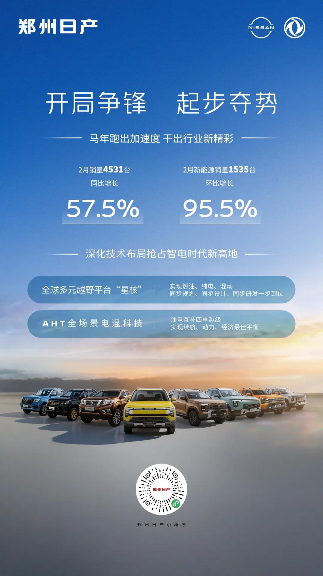 合资品牌稳中有进,展现出强劲的市场韧性与发展活力。东风本田连续两月同比增长,2月销量17583台,同比增长 10.1%;其主力车型 CR-V在2月销量破万,同比增长13.2%,成为销量增长的重要支撑。东风日产开年即放大招,2月24日举办“四车齐发,油电同进”春季发布会,十五代轩逸、天籁・鸿蒙座舱 S380 大师版等四款新车同步上市,为家轿市场注入全新动能。神龙汽车发展势头稳健,1-2月经营规模累计同比增长19%,Stellantis集团副董事长罗伯特・标致一行来访时高度认可其制造水平,神龙品牌将打造“好看、好开、好玩、好安全”的新能源产品,诠释“法式设计 + 中国智慧”的独特魅力。郑州日产则实现了“两连红”,2月销量同比大幅增长57.5%,新能源销量环比增长95.5%,旗下锋坦 Frontier Pro、Z9系列迎来集中交付期,持续圈粉市场。