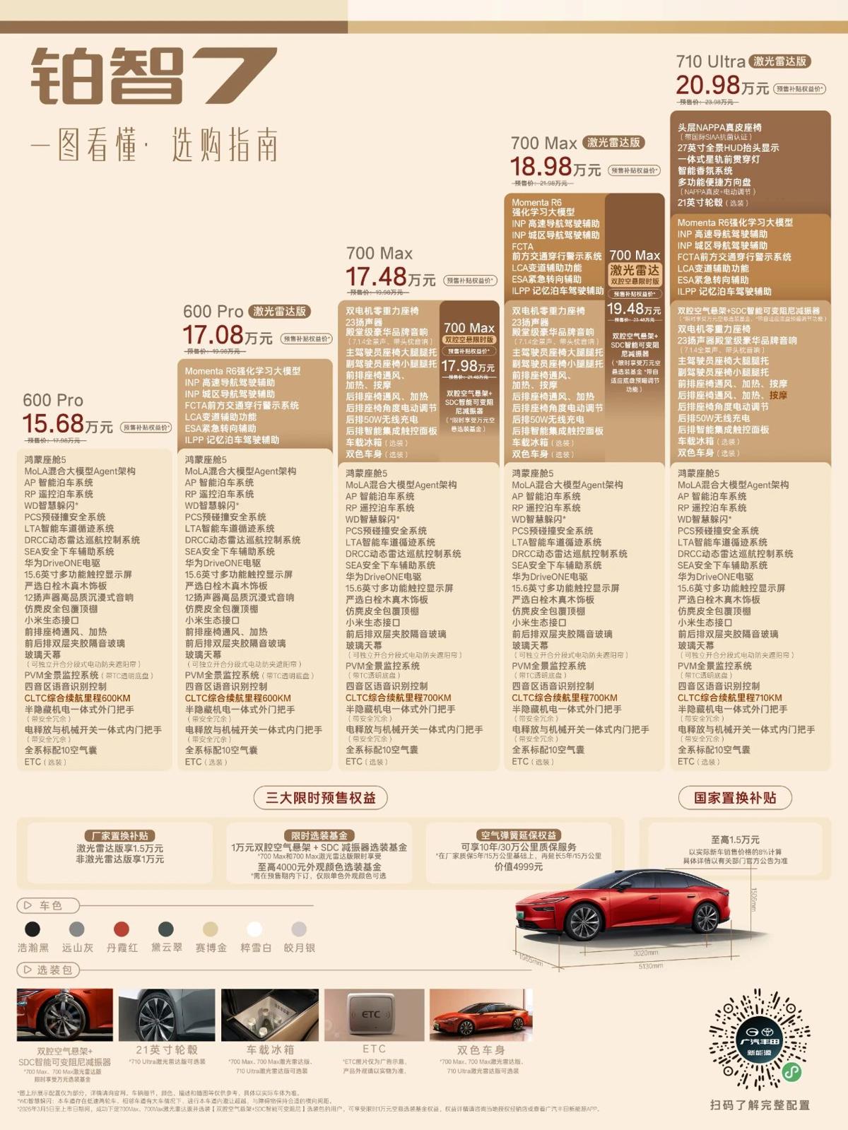 在此基础上,铂智7全系还可享最高1.5万元国家置换补贴。最终,铂智7预售权益价低至15.68万元起:
