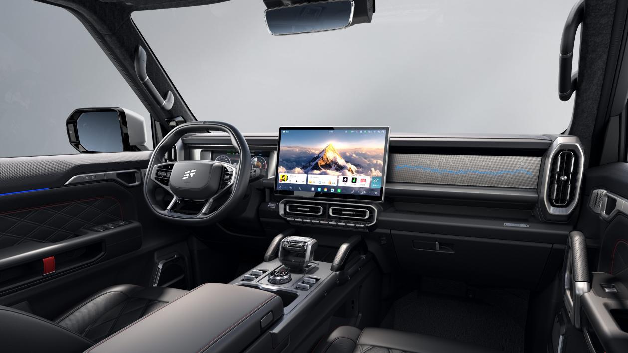 双车以“最美方盒子”硬派造型为基底,量身打造专属骏马版设计。骊影黑哑光车漆采用微米级金属精雕工艺,静态深邃,动态锋芒;藏于轮毂间的红色卡钳,堪称点睛之笔,既彰显视觉张力,更印证掌控自如的驾驭性能及舒适制动;黑化字标融于车身,成就纯粹整体雕塑感,宛若骏马敛息蓄势,尽显从容自信的个性审美。