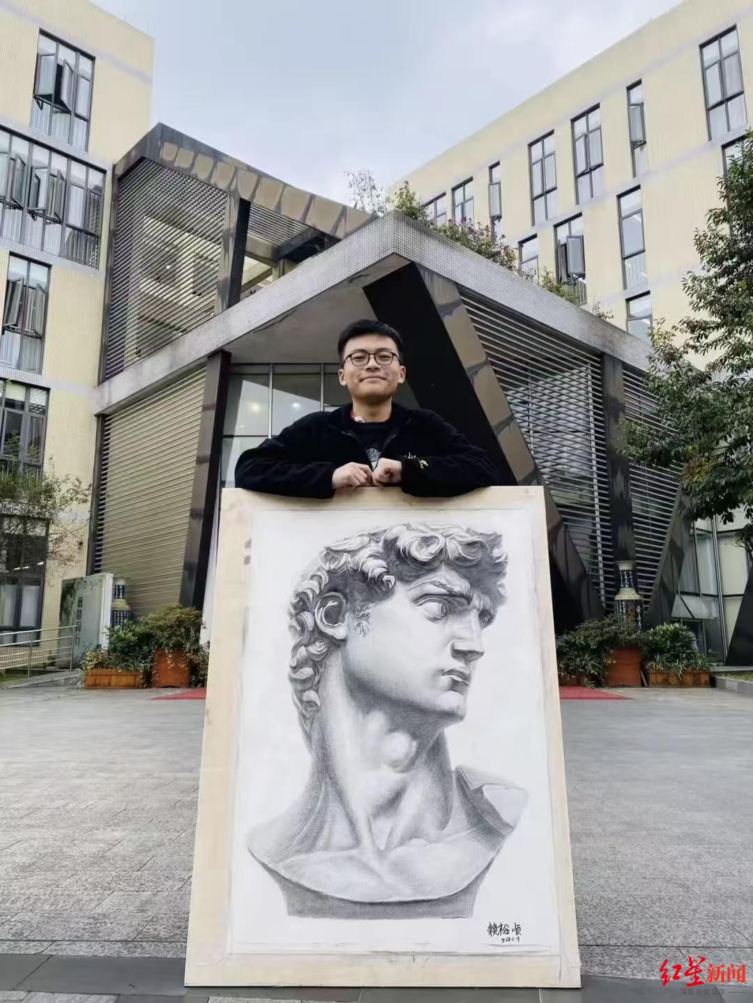 2018年的夏天,15岁的赖裕顺来到成都艺体中学读书。“那是我第一次离开家住校,也是第一次真正接触美术。”回忆起那段日子,他还觉得有点忐忑,“我几乎没有美术基础,想到未来三年要和艺术打交道,整个人都是懵的。”