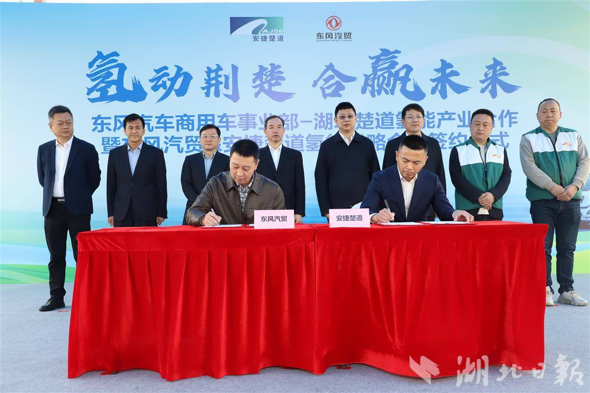 湖北日报讯(记者左晨、通讯员王怡琳)3月30日,“氢动荆楚 合赢未来”氢能战略合作签约仪式在武汉举行,东风汽车旗下东风汽车贸易有限公司与湖北安捷楚道供应链有限公司,正式签署氢能重卡推广应用合作协议,双方将携手省内多家龙头企业,推动1500台东风氢能重卡批量采购、落地应用。