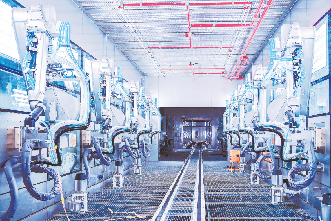 涂装车间实现智能机器人喷涂。