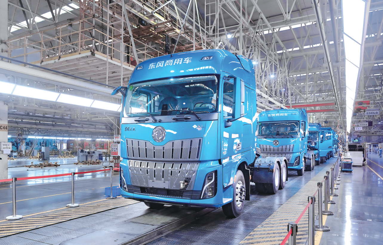 在D600智慧工厂,东风天龙KH批量下线。记者 张启国 通讯员刘鸿飞 摄