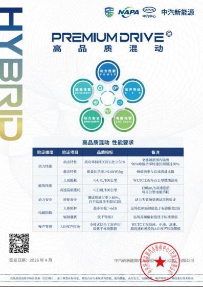 星源插混荣获中汽中心“高品质混动”认证