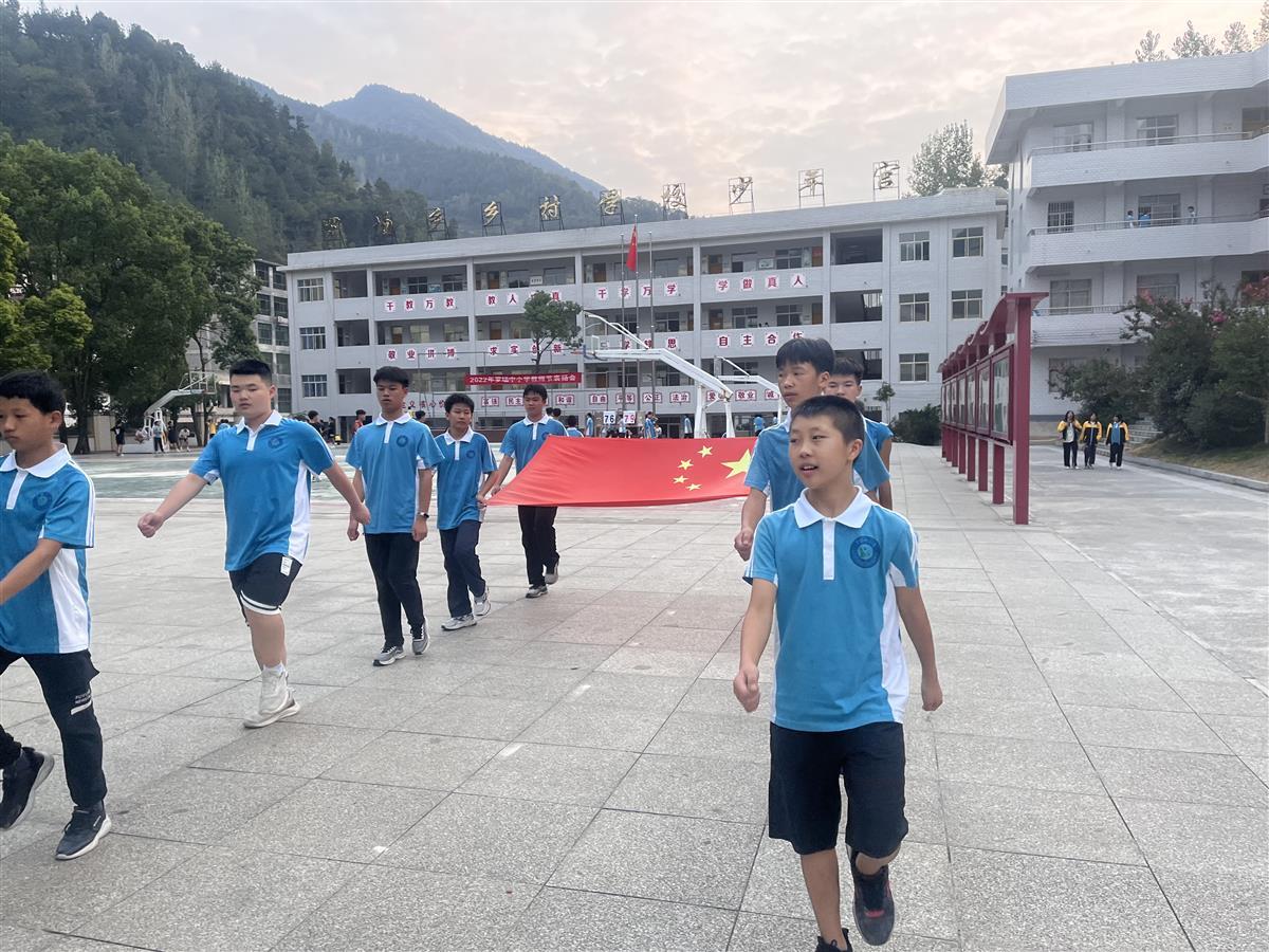 9月19日清晨,伴随着庄严的国歌,罗场中小学每周一次的升旗仪式正在操场上举行。国旗班学生昂首挺胸,注视着五星红旗缓缓升向天空,完成了国旗班成立以来本学期的第三次亮相。
