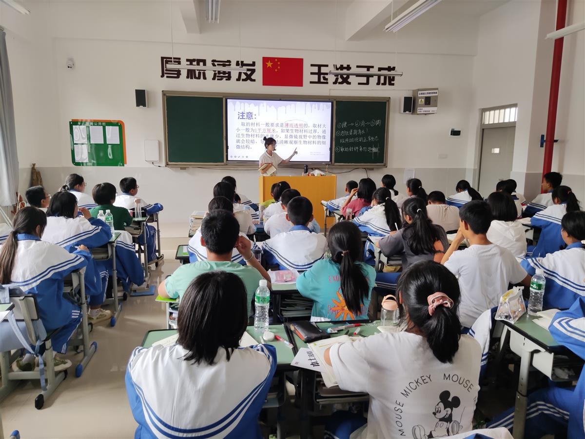 闵堂睿在给学生上公开课《植物玻片标本的制作》