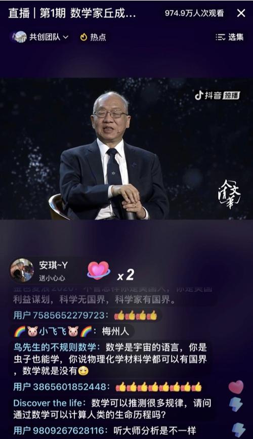 近期,世界顶尖数学家、清华大学丘成桐数学科学中心主任丘成桐,在“人文清华”抖音直播间带来了以学“问”为主题的演讲,他结合数学史上的“听音辨鼓”等重要问题及他本人证明卡拉比猜想、提出极小曲面猜想的研究历程,深入浅出地讲述了一流的学问该怎么“问”、一流的人才该如何“学”。演讲吸引了超1260万观众在线旁听。