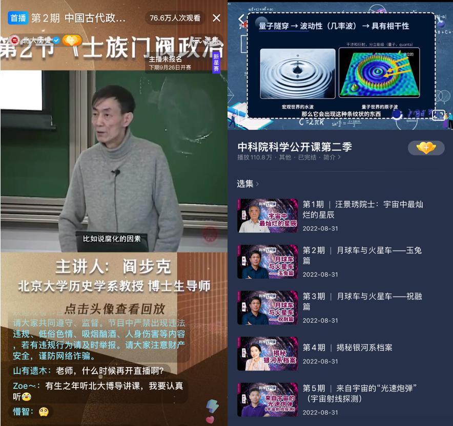 此次联合知名高校推出100场公开课,也是助推高质量知识普惠的积极迈步。人们可以在抖音上听清华教授张国刚讲《资治通鉴》,可以听复旦教授张汝伦讲《论语导读》,可以听北大教授李启成讲《中国法制史》……然后跟着“长知识”。