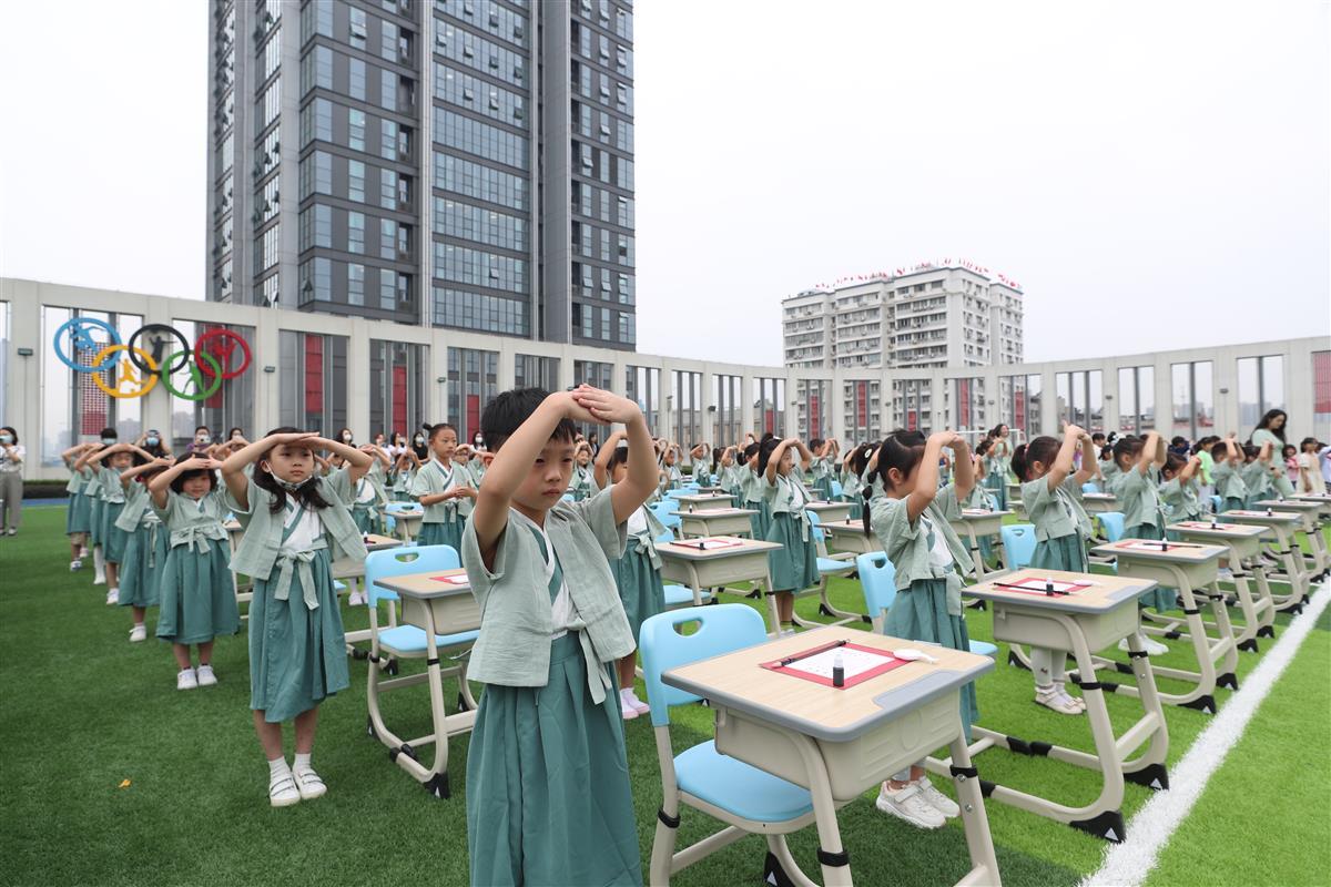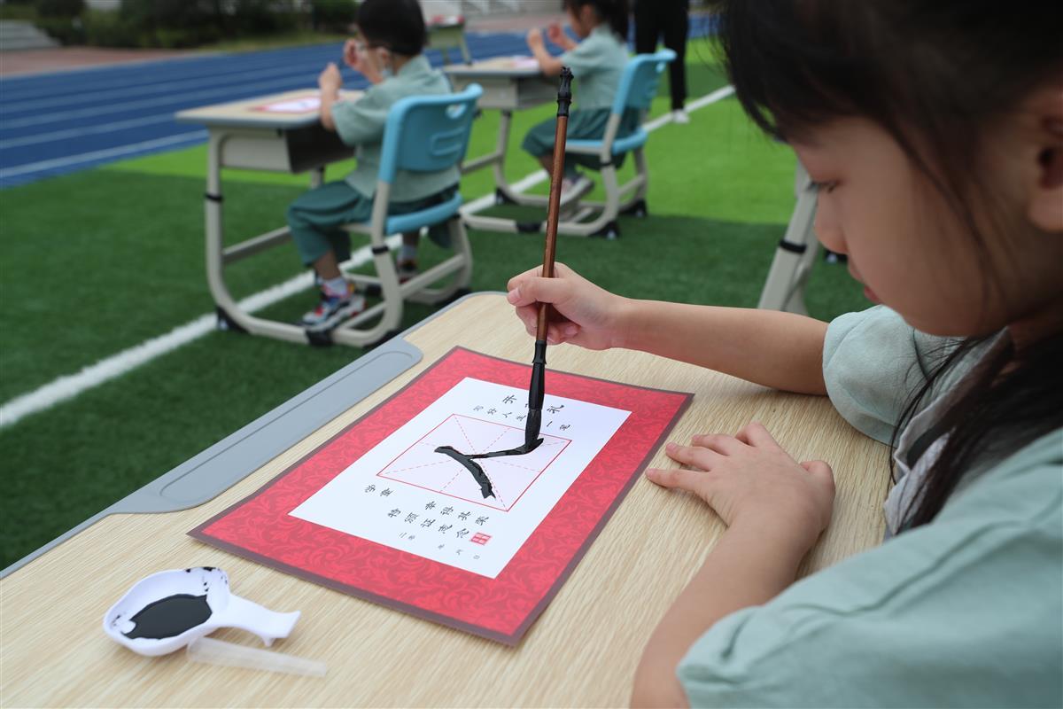 活动在全体一年级学生稚嫩而又响亮的《三字经》诵读声中结束。同学们高高举起自己书写的“人”字,快乐地开启自己美好的校园生活,向美而行,茁壮成长,立志做新时代自信好少年。