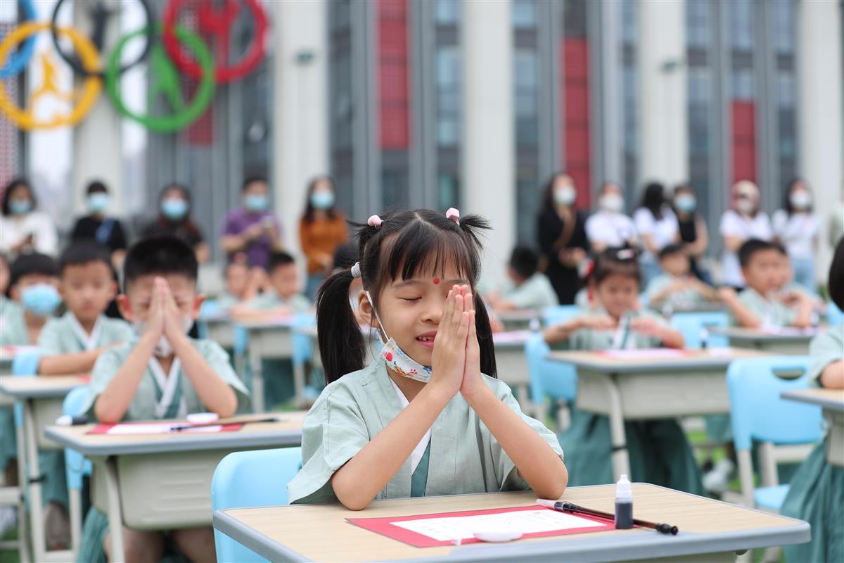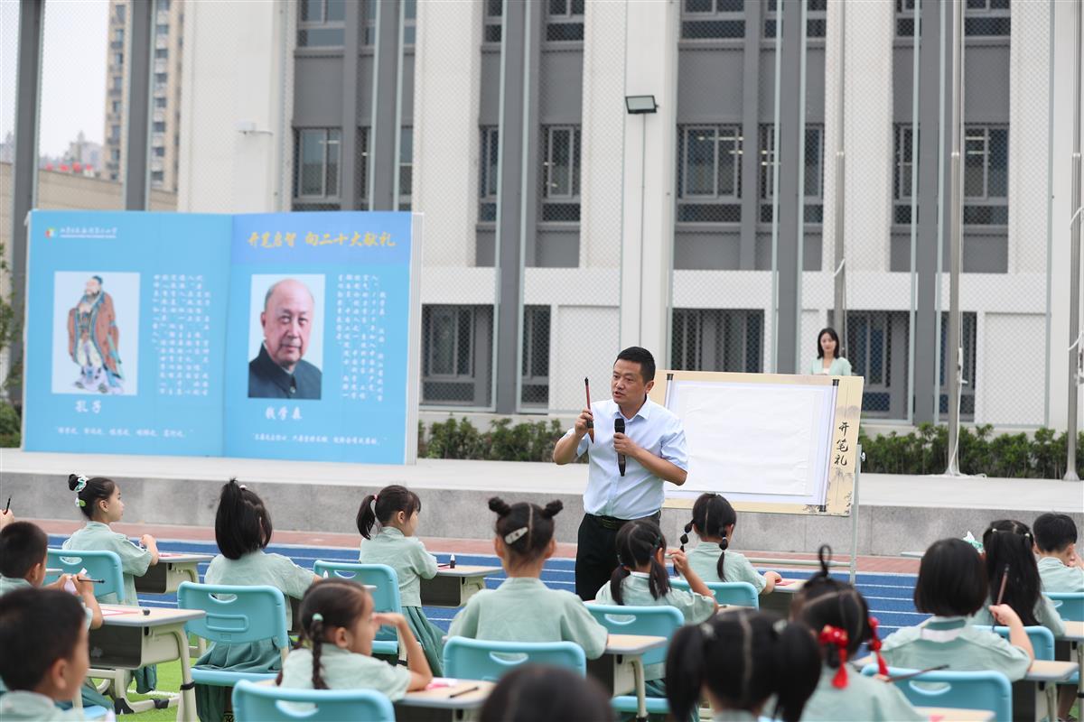 “开笔礼”是中国传统文化中对少儿开始识字习礼的一种启蒙教育形式,是开始学习走向成才的起点。学校通过开展诵读经典、端正衣冠、朱砂启智、击鼓鸣志、书写“人”字、行鞠躬礼等环节,让同学们学习尚礼,立志做有理想的人、有德性的人、有文化的人。