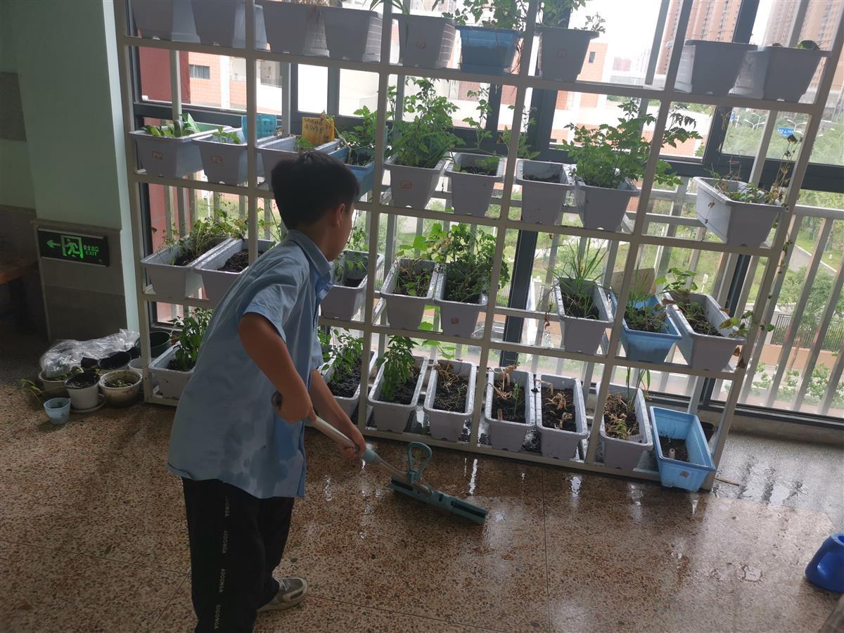 走廊上的绿植都是学生种养