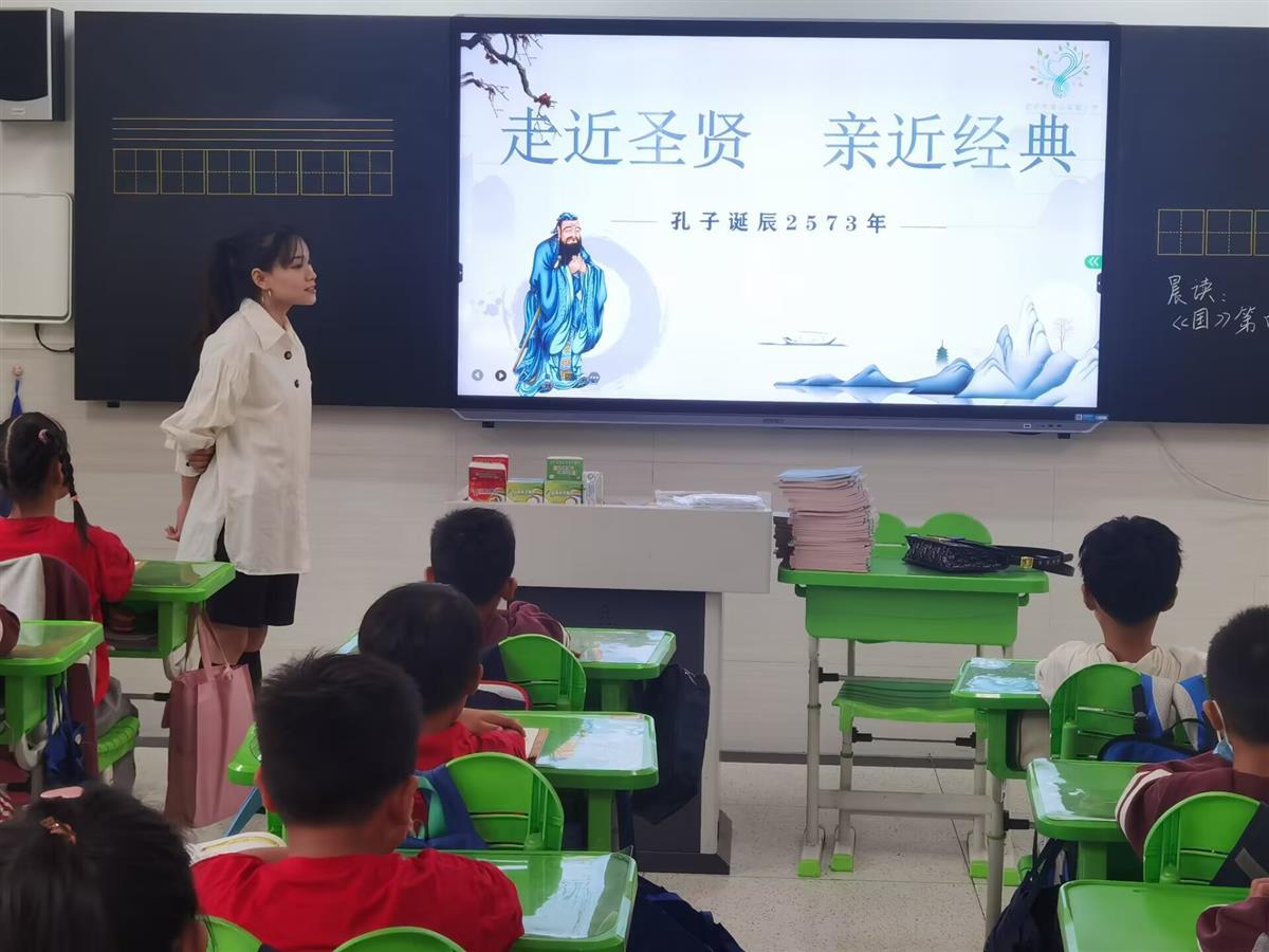 “同学们,孔子诞生于公元前551年9月28日,今天是孔子诞辰2573周年纪念日。你们都读过哪些和孔子相关的书籍?”9月28日,洪山实验小学举行了全校的孔子课程群启动仪式。