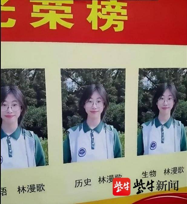 一张光荣榜,表扬在某次考试中,各单科的“状元”,然而,再仔细一看,这些“状元”的头像是同一张照片。这段网友拍摄的视频,连日来受到了网友的大量围观、转发。视频中,霸榜的女生叫林漫歌,照片里的女生戴着大框眼镜,面容清秀,各幅照片下面对应着语文、数学、英语、历史、生物、政治。对此,网友们纷纷留言点赞,有网友留言“同时能拿下六门学科的第一名,这是妥妥的学霸”。不少网友还调侃“我说学霸怎么都长得差不多,原来都是同一个人啊”,“看这份榜单上,最心慌的是老师,缺谁谁尴尬”。