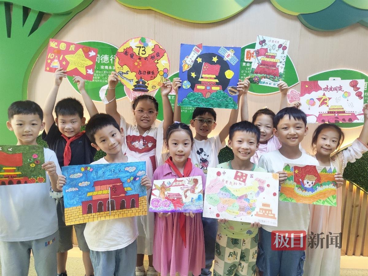 课后,学生们纷纷为祖国献礼。他们拿起五彩的画笔,或画出他们心中的《千字文》,或描绘出一幅幅他们心中最能代表中国的地方。制作国庆宣传海报,献奏钢琴曲,吟诵《七律·长征》,做贺卡,他们还用自己最喜欢的方式,表达对祖国母亲的热爱、对新中国73岁生日的祝福。四(3)班雷宇诺同学就用钢琴曲《保卫黄河》表达对祖国母亲的祝福。