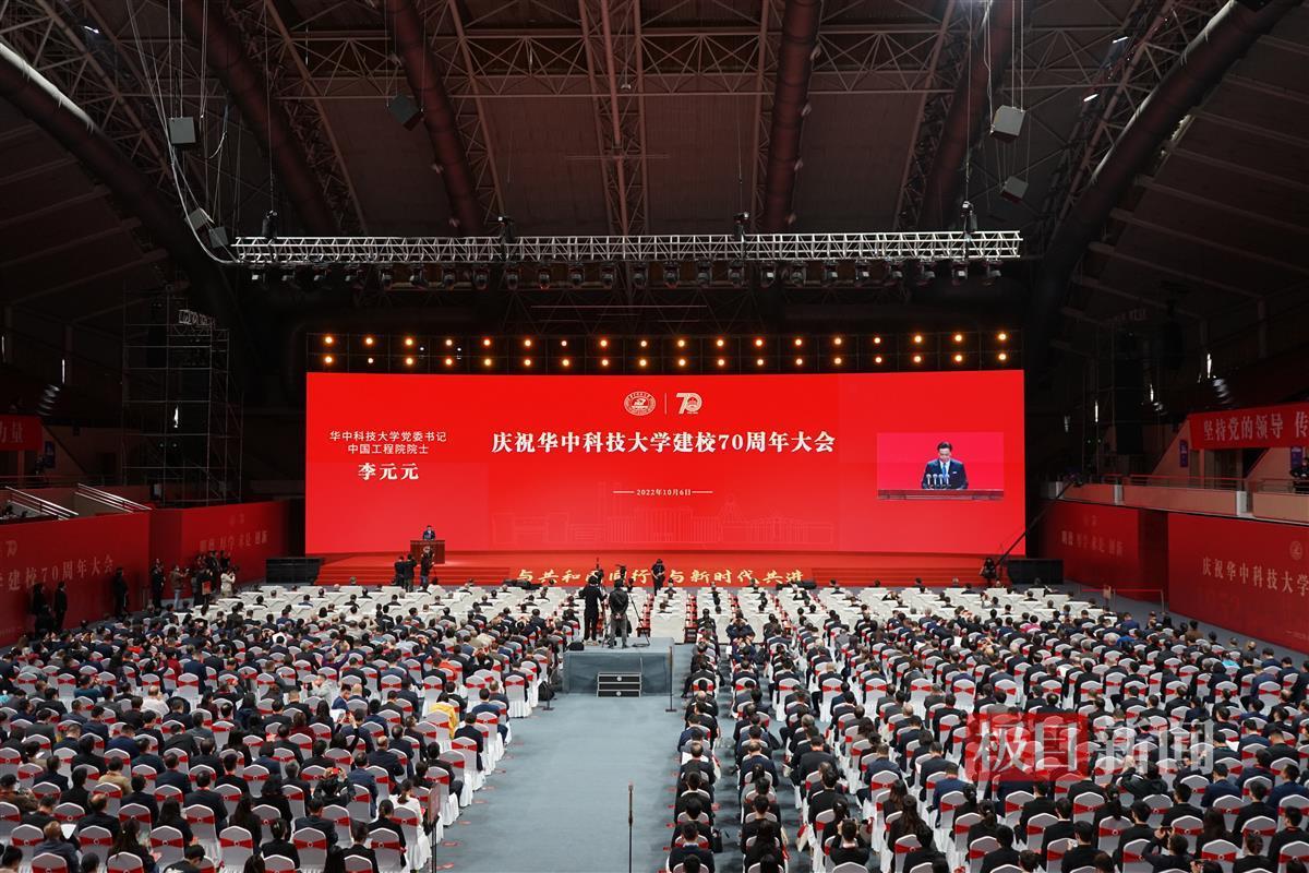 10月6日上午,华中科技大学在该校光谷体育馆举行建校70周年庆祝大会。大会现场,宾朋满座,20余名两院院士、数十名企业家和校友代表以及部分兄弟高校的领导齐聚一堂、共襄盛举。