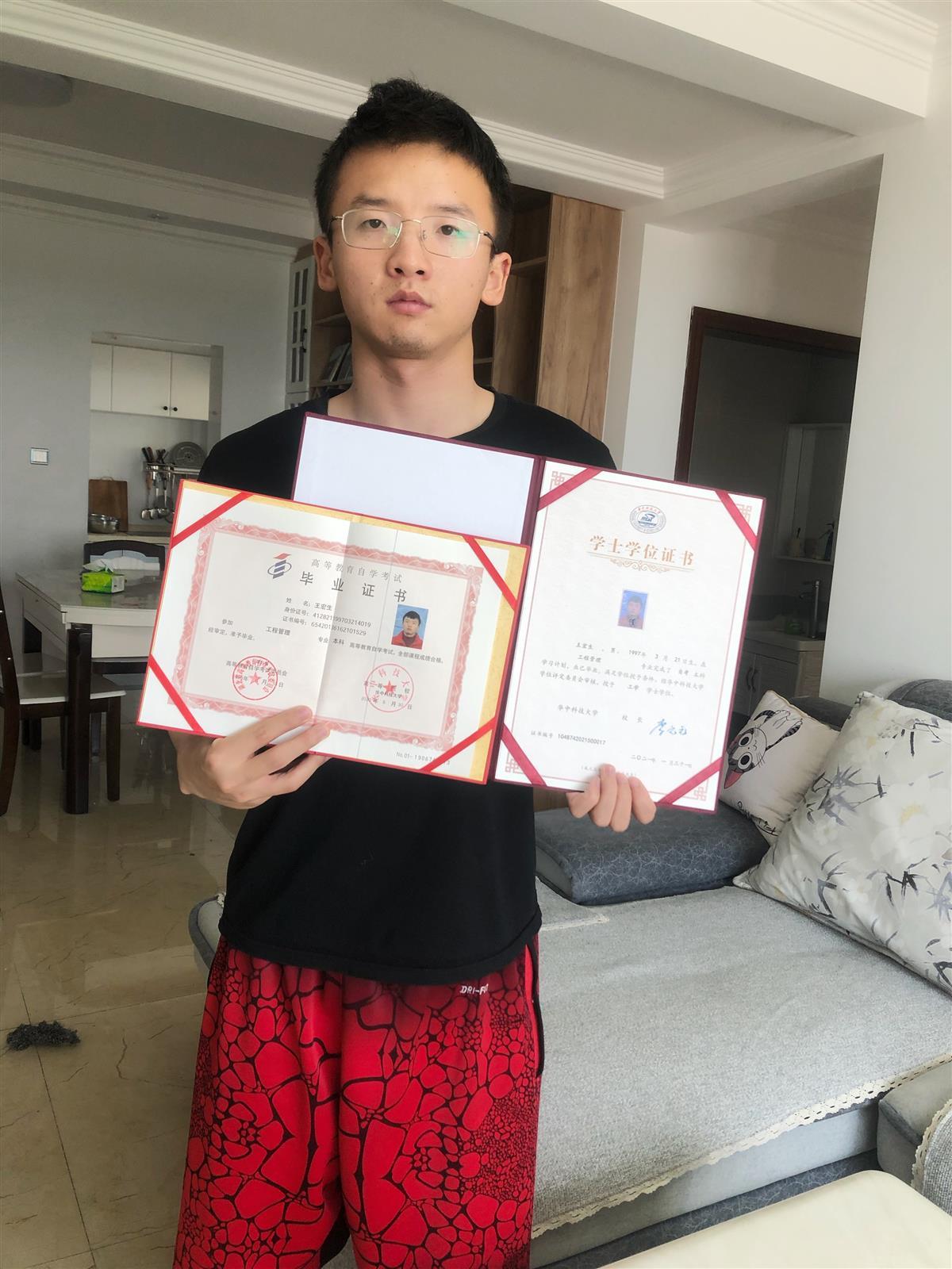 2019届毕业生王宏生,2020年6月份拿到专升本毕业证,现就职于同济大学设计研究院。