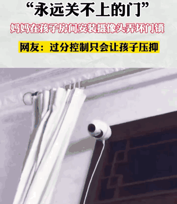 一位妈妈给孩子的卧室安装了一个摄像头,并破坏了房间的门锁。视频的最后,妈妈还得意地冲着镜头比了一个“耶”的手势。