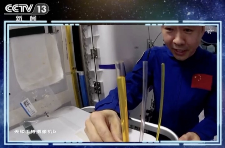 在太空中,微重力环境下毛细效应与地球上所呈现的迥然不同,水球中加入钢球后,流体变慢了;种子在问天实验舱内生根发芽,再过不久就能被带回地球……