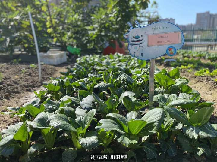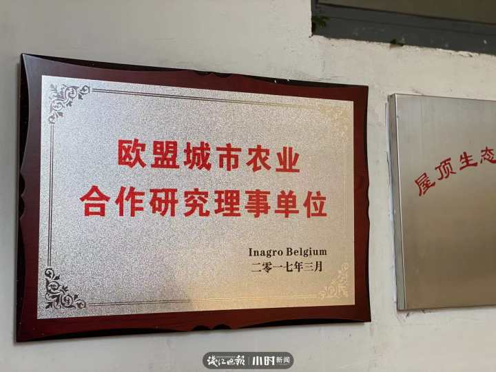 听学校老师介绍,空中农场是2014年兴建的,是浙江省农科院屋顶农业专家李伯钧设计的。在省农科院专家推荐下,小学还成为欧盟城市农业合作研究理事单位,是不是特别牛?