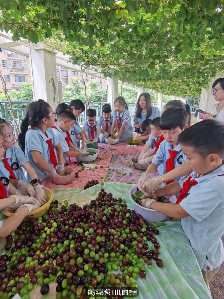 平时,五年一班主要负责葡萄园日常管理,那里种植着16个品种32株葡萄,还有省农科院博士来指导孩子种葡萄,濮家小学笕新校区也是全国种植葡萄品种最多的小学。