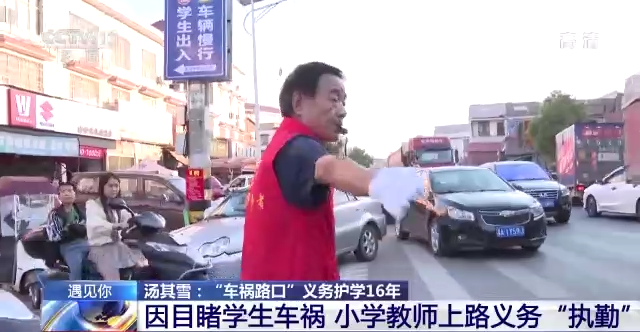 汤老师之所以选择做护学员,是因为16年前,在王仙镇中小学的交叉路口,他亲眼看见自己曾经教过的学生因避让不及亡命于车轮之下。心痛不已的汤老师做了一个决定:他要在这个车祸频发的路口疏导交通,保护学生的安全。从那以后,他每天近4小时的义务“执勤”几乎从未间断过。16年来,再也没有一个学生在这里出过安全事故。