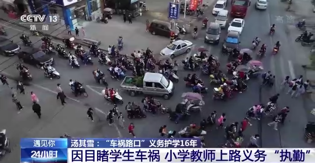 汤其雪:我一直睡不着,我翻来覆去想,我想如果是有一个人帮他们过过马路多好,所以我就暗暗下定了决心。我如果是提出了护学,家人肯定会反对我,我不管怎么反对,我一定要帮学生过马路。
