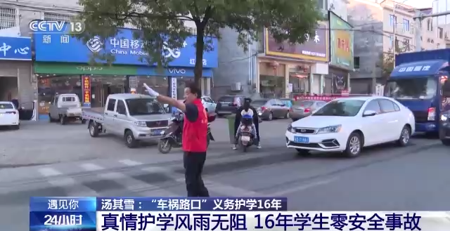 现在,汤老师的工作已经退休了,而“守护孩子们”的职责也已经有了接班人,以汤老师名字命名的义务护学队,还得到当地政府的支持、从交警培训到为每位志愿者购买意外伤害险,让一个人的坚守,变成了大家共同的守护。