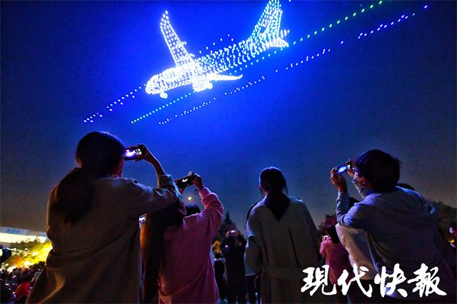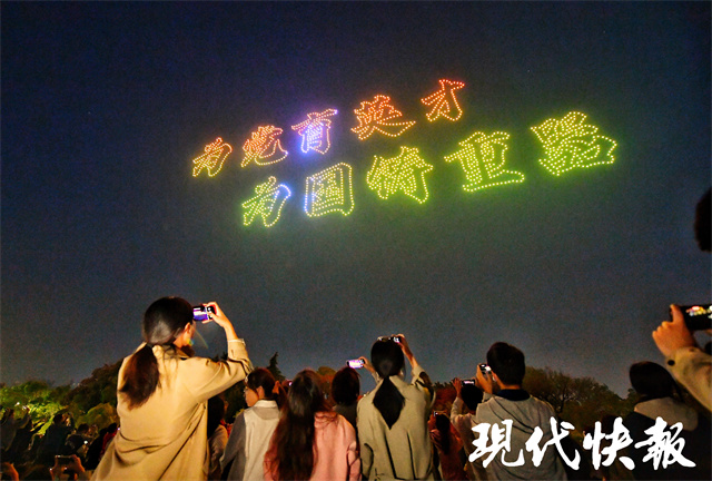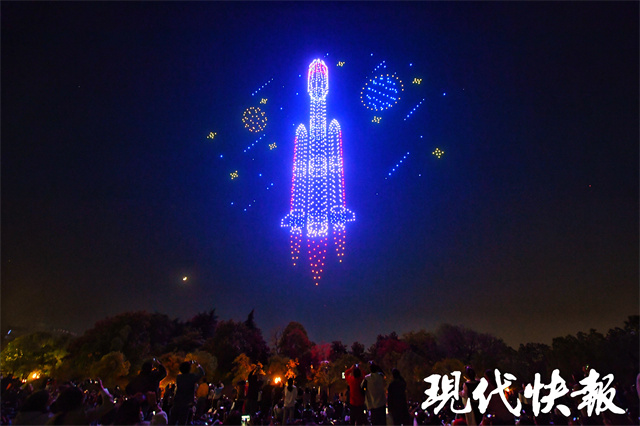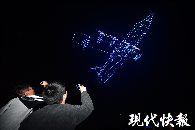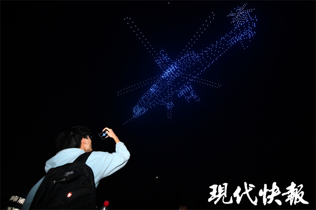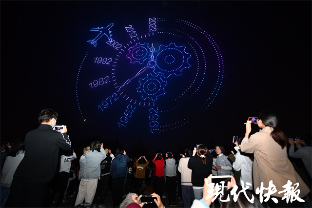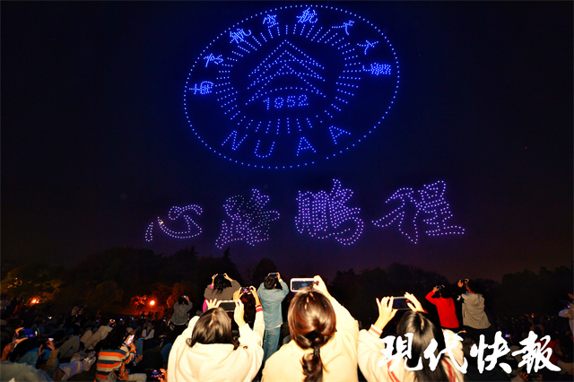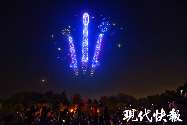 现代快报讯10月30日晚,南京航空航天大学将军路校区上空,2022架无人机拼出各种造型,一场无人机编队表演炫酷上演。