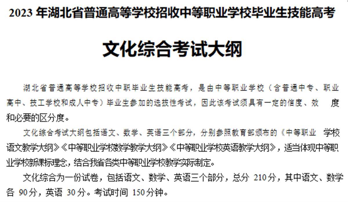 技能高考文化综合考试大纲(图片来源:湖北省教育考试院)