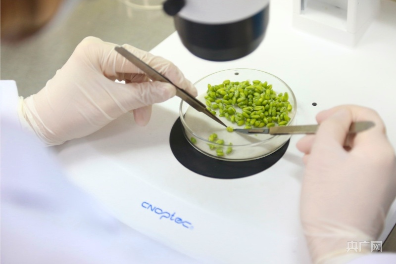 工作人员正在进行种子研究(央广网记者唐磊摄)