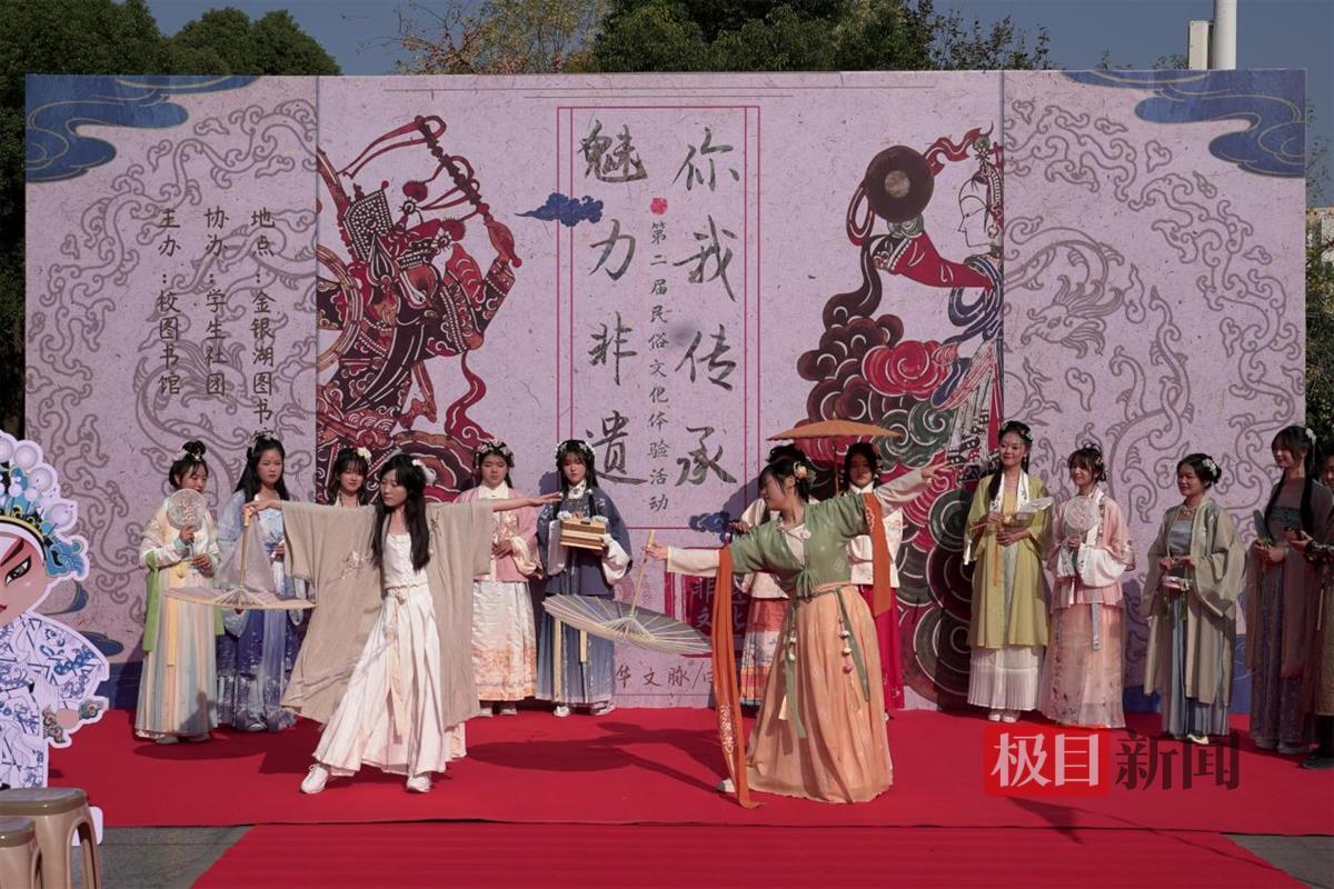 剪纸、活字印刷术体验、篆刻体验、刺绣、汉服走秀……11月6日下午,武汉轻工大学图书馆联合学生社团在该校金银湖校区青春广场举办了“魅力非遗,你我传承”第二届校园民俗文化体验活动。此次活动集文艺演出、非遗文化体验、沉浸式民俗游戏活动等多元素为一体,打造“可观、可玩、可品”的沉浸式互动体验,吸引了众多师生参与。师生们通过身临其境地感受非遗文化的魅力,进一步领略了中华文明的丰富内涵和独特价值。