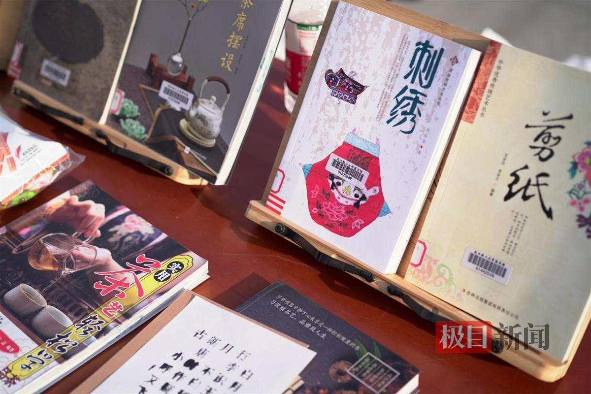“今年除了一个个民俗活动的体验区,我们还安置了国风舞台表演,比如刚刚看到的汉服走秀《踏歌行》、京剧《文昭关》和《杨门女将·探谷》,接下来还会有《一花一剑》古风歌曲和笛箫合奏《神女劈观》。这都是校内各社团主动为这次民俗节提供的表演,想让同学们不仅能‘玩好’,更能‘沉浸’在传统文化氛围中。为了配合非遗体验活动,我馆还推出‘发掘千年瑰宝,传递创新秘钥’非物质文化遗产传统技艺类图书展,方便同学们进一步学习和钻研非遗文化。”图书馆王春燕老师说。
