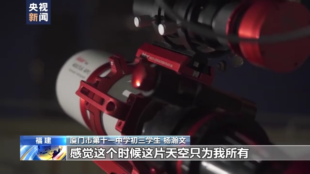 厦门市第十一中学初三学生 杨瀚文:我透过城市的光幕,看到了那些亿万光年之外的风景,感觉这个时候这片天空只为我所有。我觉得我的生命、我的存在是有价值的,是有意义的。这种感觉会让我更加有力量面对未来。