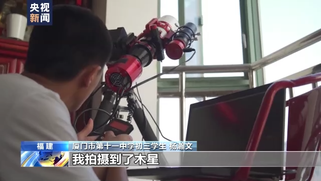 厦门市第十一中学初三学生 杨瀚文:2019年的暑假,人生中第一次通过我入门的那台望远镜,拍摄到了木星。在那一次我能通过望远镜亲眼看到,那些以前只能在书里面,电影里面看到的东西,那么真实地浮现在眼前。这种感觉就好像我通过望远镜把这么广阔的空间给压缩起来了,这种感觉让我觉得非常神奇。