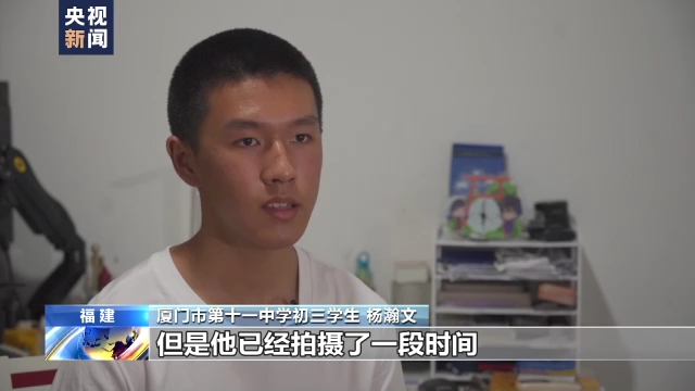厦门市第十一中学初三学生 杨瀚文:因为这个普及率比较低,所以遇到很多问题可能别人也没有经验,遇到一些疑难杂症都得自己去解决。因为我一开始拍摄机会很少,所以解决问题的机会也很少,基本上每一次拍摄都不顺利。